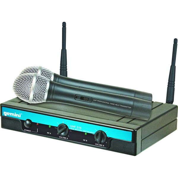The Acesonic UHF-2932 UHF wireless microphone system includes dual UHF mics with 16 switchable channels. The microphone and receiver will automatically sync channels through IR when you change to a different channel.